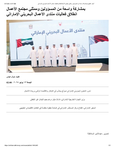 6/13/25, 9:37 AM ﻲﺗارﺎﻣﻹا ﻲﻧﯾرﺣﺑﻟا لﺎﻣﻋﻷا ىدﺗﻧﻣ تﺎﯾﻟﺎﻌﻓ قﻼطﻧﻻﺎﻣﻋﻷا ﻊﻣﺗﺟﻣ ﻲﻠﺛﻣﻣو نﯾﻟوؤﺳﻣﻟا نﻣ ﺔﻌﺳاو ﺔﻛرﺎﺷﻣﺑ | ﺞﯾﻠﺧﻟا رﺎﺑﺧأ