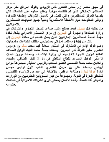 ةﺬﻓﺎﻧ ﻞﻜﺸﯾ ﻲﺗارﺎﻣﻹا ﺮﻤﺜﺘﺴﻤﻟا ﺰﻛﺮﻣ نإ ﻦﯾﺮﺤﺒﻟا ﻲﻓ ةرﺎﺠﺘﻟاو ﺔﻋﺎﻨﺼﻟا ةرازو