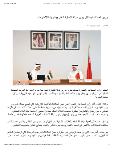 6/13/25, 9:28 AM تارﺎﻣﻻا ﺔﻟودﺑ ﺔﯾﺟرﺎﺧﻟا ةرﺎﺟﺗﻠﻟ ﺔﻟود رﯾزو لﺑﻘﺗﺳﯾ ﺔﻋﺎﻧﺻﻟا رﯾزو | ﺔﯾﻧﯾرﺣﺑﻟا نطوﻟا ﺔﻔﯾﺣﺻ