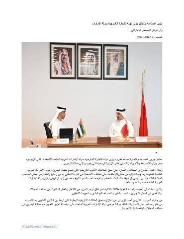 ةيبرعلا تاراملإا ةلودو نيرحبلا ةكلمم عمجت يتلا ةيخيراتلا ةيوخلأا تاقلاعلا قمع ىلع ةراجتلاو ةعانصلا ريزو دكأ ،ءاقللا للاخو