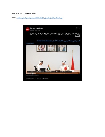 Publication: X – Al Bilad Press Link: ةدحتلما ةيبرعلا تاراملاا ةلودب ةيجراخلا ةراجتلل ةلود ريزو لبقتسي ةراجتلاو ةعانصلا ريزو