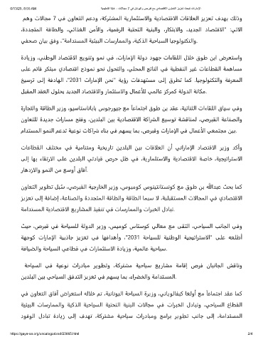 ةدﺎﻳزو ،ﻲﻨﻃﻮﻟا دﺎﺼﺘﻗالا ﻊﻳﻮﻨﺗو ﻮﻤﻧ ﻲﻓ ،تارﺎﻣإلا ﺔﻟود دﻮﻬﺟ تاءﺎﻘﻠﻟا لالﺧ قﻮﻃ ﻦﺑا ضﺮﻌﺘﺳاو