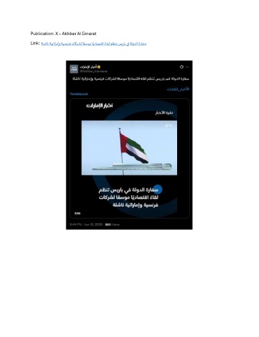 Publication: X – Akhbar Al Emarat ً ً ً Link: ةئشان ةيتارامإو ةيسنرف تاكرشل اعسوم ايداصتقا ءاقل مظنت سيراب يف ةلودلا ةرافس