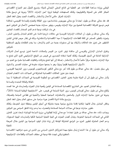 ﺔشﻗﺎنمﻟ ،ﻲﺻربﻘﻟا ﺔﻋﺎنصﻟاو ةرﺎجتﻟاو ﺔﻗﺎطﻟا ريزو ،ويﺳﺎتﺳﺎﻧﺎبﺎب سوﺟرويﺟ ﻲﻟﺎﻌﻣ ﻊﻣ ﺎﻋﺎمتﺟا ،قوط نﺑ ﷲدبﻋ ﻲﻟﺎﻌﻣ دﻘﻋ دﻘﻓ