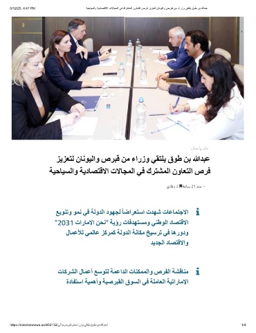 6/12/25, 4:47 PM ﺔﯾﺣﺎﯾﺳﻟاو ﺔﯾدﺎﺻﺗﻗﻻا تﻻﺎﺟﻣﻟا ﻲﻓ كرﺗﺷﻣﻟا نوﺎﻌﺗﻟا صرﻓ زﯾزﻌﺗﻟ نﺎﻧوﯾﻟاو صرﺑﻗ نﻣ ءارزو ﻲﻘﺗﻠﯾ قوط نﺑ ﷲدﺑﻋ