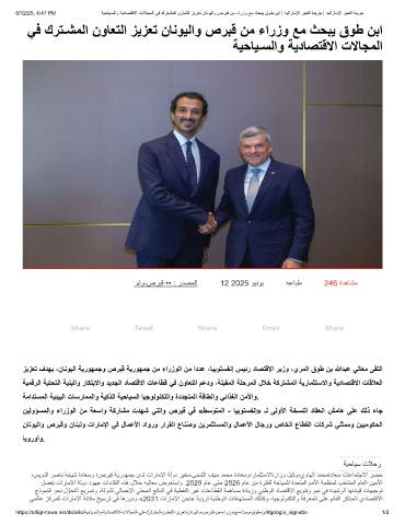 6/12/25, 4:47 PM ﺔﯾﺣﺎﯾـﺳﻟاو ﺔﯾدﺎﺻﺗﻗﻻا تﻻﺎﺟﻣﻟا ﻲﻓ كرﺗـﺷﻣﻟا نوﺎﻌﺗﻟا زﯾزﻌﺗ نﺎﻧوﯾﻟاو صرﺑﻗ نﻣ ءارزو ﻊﻣ ثﺣﺑﯾ قوط نﺑا | ﮫﯾﺗارﺎﻣﻹا رﺟﻔﻟا ةدﯾرﺟ | ﮫﯾﺗارﺎﻣﻹا رﺟﻔﻟا ةدﯾرﺟ