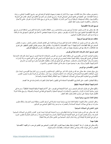 ةدايزو ،ينطولا داصتقلاا عيونتو ومن يف ةديشرلا اهتدايق تاهيجوت لضفب تاراملإا ةلود دوهج ،تاءاقللا هذه للاخ ،هيلاعم ضرعتساو