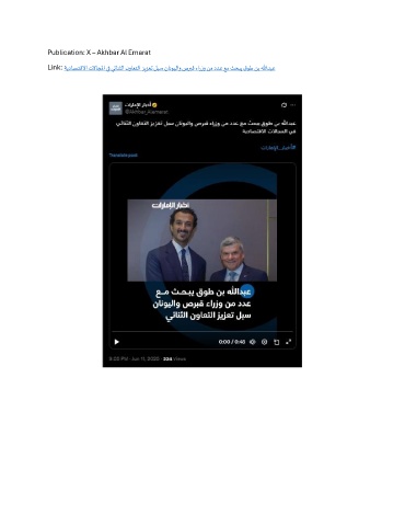 Publication: X – Akhbar Al Emarat Link: ةيداصتقلاا تلااجلما يف يئانثلا نواعتلا زيزعت لبس نانويلاو صربق ءارزو نم ددع عم ثحبي قوط نب اللهدبع