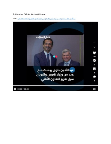 Publication: TikTok – Akhbar Al Emarat Link: ةيداصتقلاا تلااجلما يف يئانثلا نواعتلا زيزعت لبس نانويلاو صربق ءارزو نم ددع عم ثحبي قوط نب اللهدبع