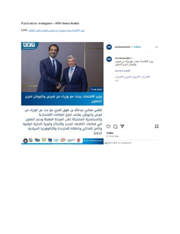 Publication: Instagram – ARN News Arabic Link: نواعتلا زيزعت نانويلاو صربق نم ءارزو عم ثحبي داصتقلاا ريزو