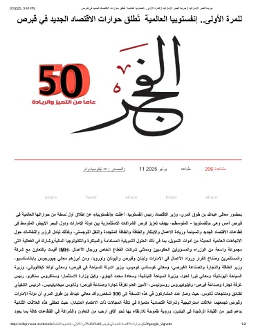 6/12/25, 3:41 PM صرﺑﻗ ﻲﻓ دﯾدﺟﻟا دﺎﺻﺗﻗﻻا تاراوﺣ ﻖﻠطُﺗ ﺔﯾﻣﻟﺎﻌﻟا ﺎﯾﺑوﺗﺳﻔﻧإ ..ﻰﻟوﻷا ةرﻣﻠﻟ | ﮫﯾﺗارﺎﻣﻹا رﺟﻔﻟا ةدﯾرﺟ | ﮫﯾﺗارﺎﻣﻹا رﺟﻔﻟا ةدﯾرﺟ
