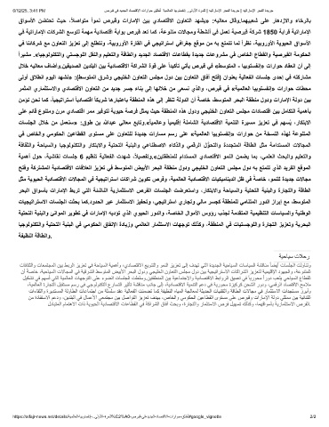 قاوﺳﻷا نﺿﺗﺣﺗ ثﯾﺣ ،ًﻼﺻاوﺗﻣ ًاوﻣﻧ صرﺑﻗو تارﺎﻣﻹا نﯾﺑ يدﺎﺻﺗﻗﻻا نوﺎﻌﺗﻟا دﮭﺷﯾ» :ﮫﯾﻟﺎﻌﻣ لﺎﻗو.ﺎﻣﮭﯾﺑﻌﺷ ﻰﻠﻋ رﺎھدزﻻاو ءﺎﺧرﻟﺎﺑ