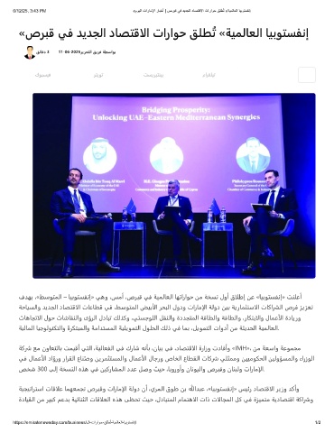 6/12/25, 3:43 PM «موﯾﻟا تارﺎﻣﻹا رﺎﺑﺧأ | صرﺑﻗ ﻲﻓ دﯾدﺟﻟا دﺎﺻﺗﻗﻻا تاراوﺣ ﻖﻠطُﺗ «ﺔﯾﻣﻟﺎﻌﻟا ﺎﯾﺑوﺗﺳﻔﻧإ