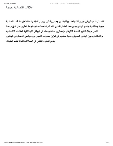 ﺔﯾدﺎﺻﺗﻗا تﺎﻗﻼﻌﺑ نﺎﻌﺗﻣﺗﺗ تارﺎﻣﻹا ﺔﻟودو نﺎﻧوﯾﻟا ﺔﯾروﮭﻣﺟ نإ ،ﺔﯾﻧﺎﻧوﯾﻟا ﺔﺣﺎﯾﺳﻟا ةرﯾزو ،ﻲﻧﺎﯾوﻟﺎﻔﯾﻛ ﺎﻐﻟوأ تﻟﺎﻗ