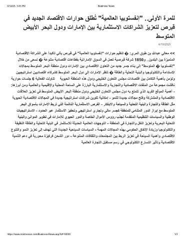 ﺔﯾدﺎﺻﺗﻗﻻا ﺔﻛارﺷﻟا ﻰﻠﻋ ًادﯾﻛﺄﺗ ﻲﺗﺄﯾ صرﺑﻗ ﻲﻓ "ﺔﯾﻣﻟﺎﻌﻟا ﺎﯾﺑوﺗﺳﻔﻧإ" تاراوﺣ مﯾظﻧﺗ � :يرﻣﻟا قوط نﺑ ﷲدﺑﻋ ﻲﻟﺎﻌﻣ <<