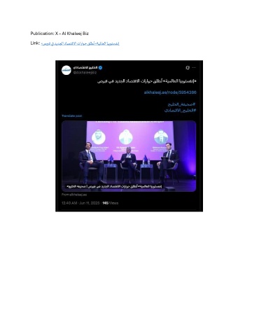 Publication: X – Al Khaleej Biz ُ Link: « صربق يف ديدجلا داصتقلاا تاراوح قلطت »ةيلماعلا ايبوتسفنإ
