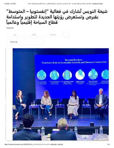 6/12/25, 4:35 PM ً ﺎﯾﻣﻟﺎﻋو ً ﺎﯾﻣﯾﻠﻗإ ﺔﺣﺎﯾﺳﻟا عﺎطﻗ ﺔﻣادﺗﺳاو رﯾوطﺗﻟ ةدﯾدﺟﻟا ﺎﮭﺗﯾؤر ضرﻌﺗﺳﺗو صرﺑﻘﺑ "طﺳوﺗﻣﻟا - ﺎﯾﺑوﺗﺳﻔﻧإ" ﺔﯾﻟﺎﻌﻓ ﻲﻓ كرﺎﺷُﺗ سﯾوﻧﻟا ﺔﺧﯾﺷ - Business News