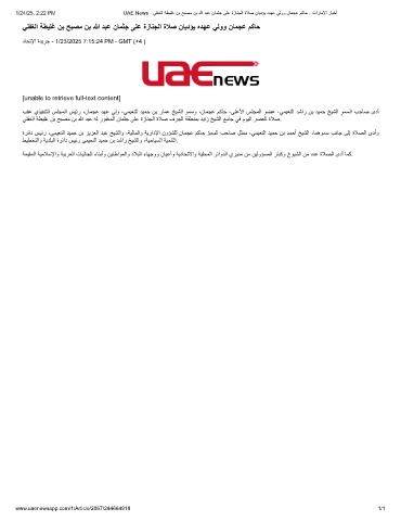 1/24/25, 2:22 PM UAE News - ﻲﻠﻔﻐﻟا ﺔطﯾﻠﻏ نﺑ ﺢﺑﺻﻣ نﺑ ﷲ دﺑﻋ نﺎﻣﺛﺟ ﻰﻠﻋ ةزﺎﻧﺟﻟا ةﻼﺻ نﺎﯾدؤﯾ هدﮭﻋ ﻲﻟوو نﺎﻣﺟﻋ مﻛﺎﺣ - تارﺎﻣﻹا رﺎﺑﺧأ