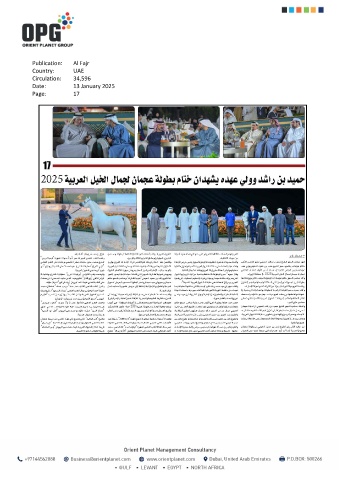 Publication: Al Fajr Country: UAE Circulation: 34,596 Date: 13 January 2025 Page: 17