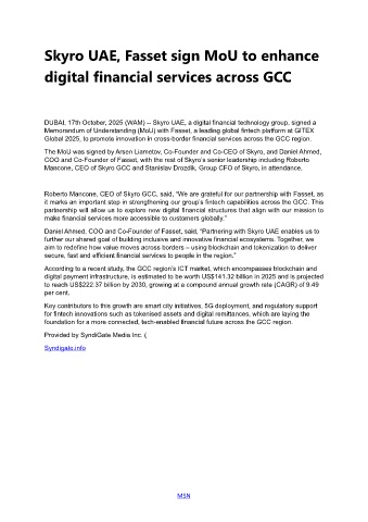 DUBAI, 17th October, 2025 (WAM) -- Skyro UAE, a digital financial technology group, signed a
