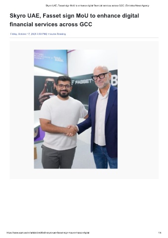 Skyro UAE, Fasset sign MoU to enhance digital financial services across GCC | Emirates News Agency