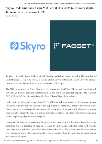 https://executive-bulletin.com/technology/skyro-uae-and-fasset-sign-mou-at-gitex-2025-to-enhance-digital-financial-services-across-gcc 1/2