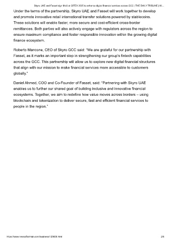 Skyro UAE and Fasset sign MoU at GITEX 2025 to enhance digital financial services across GCC | THE DAILY TRIBUNE | KI…