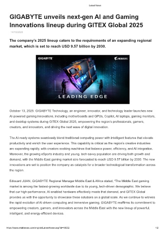 Edouard JUAN, GIGABYTE Regional Manager Middle East & Africa stated, “The Middle East gaming