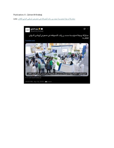 Publication: X – Zahrat Al Khaleej Link: باتكلل يلودلا يبظوبأ ضرعم« يف »ةفرعملل دشار نب دمحم ةسسؤم«ـل ةيعون ةكراشم»