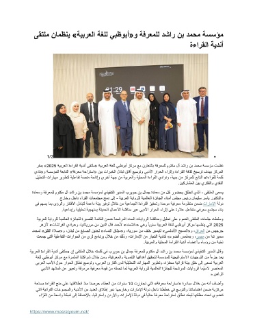 رقمب » 2025 ةيبرعلا ةءارقلا ةيدنأ ىقتلم« ةيبرعلا ةغلل يبظوبأ زكرم عم نواعتلاب ةفرعملل موتكم لآ دشار نب دمحم ةسسؤم تمظن