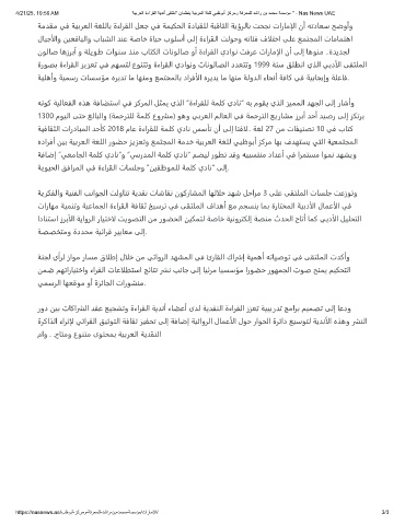 4/21/25, 10:56 AM ﺔﯾﺑرﻌﻟا ةءارﻘﻟا ﺔﯾدﻧأ ﻰﻘﺗﻠﻣ" نﺎﻣظﻧﯾ ﺔﯾﺑرﻌﻟا ﺔﻐﻠﻟ ﻲﺑظوﺑأ زﻛرﻣو ﺔﻓرﻌﻣﻠﻟ دﺷار نﺑ دﻣﺣﻣ ﺔﺳﺳؤﻣ " - Nas News UAE