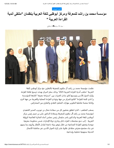 4/21/25, 10:55 AM ﺔﯾﺑرﻌﻟا ةءارﻘﻟا ﺔﯾدﻧأ ﻰﻘﺗﻠﻣ" نﺎﻣظﻧﯾ ﺔﯾﺑرﻌﻟا ﺔﻐﻠﻟ ﻲﺑظوﺑأ زﻛرﻣو ﺔﻓرﻌﻣﻠﻟ دﺷار نﺑ دﻣﺣﻣ ﺔﺳﺳؤﻣ "
