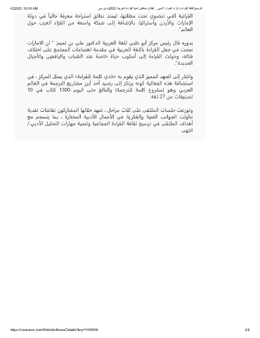 4/22/25, 10:55 AM ﻲﺑد ﻲﻓ «2025 ﺔﯾﺑرﻌﻟا ةءارﻘﻟا ﺔﯾدﻧا ﻰﻘﺗﻠﻣ» حﺎﺗﺗﻓا .. ﻲﺑدﻻا راوﺣﻟا ءارﺛاو ةءارﻘﻟا ﺔﻓﺎﻘﺛ ﺦﯾﺳرﺗﻟ