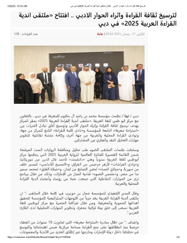 4/22/25, 10:55 AM ﻲﺑد ﻲﻓ «2025 ﺔﯾﺑرﻌﻟا ةءارﻘﻟا ﺔﯾدﻧا ﻰﻘﺗﻠﻣ» حﺎﺗﺗﻓا .. ﻲﺑدﻻا راوﺣﻟا ءارﺛاو ةءارﻘﻟا ﺔﻓﺎﻘﺛ ﺦﯾﺳرﺗﻟ
