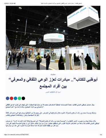 ﻲﻓﺎﻘﺛﻟا ﻲﻋوﻟا زﯾزﻌﺗ ﻰﻟإ فدﮭﺗ ﻲﺗﻟا ،ةرﻛﺗﺑﻣﻟا ﺎﮭﺗاردﺎﺑﻣ نﻣ ﺔﻋوﻣﺟﻣ ضارﻌﺗﺳﻻ ﺔﯾﻧطوﻟا تﺎﺳﺳؤﻣﻠﻟ ﺔﺻﻧﻣ ،بﺎﺗﻛﻠﻟ ﻲﻟودﻟا ﻲﺑظوﺑأ ضرﻌﻣ رﻓوﯾ