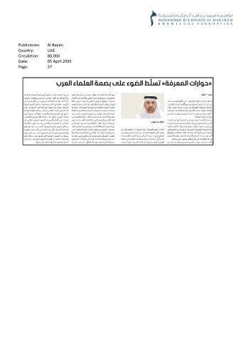 Publication: Al Bayan Country: UAE Circulation: 88,000 Date: 05 April 2025 Page: 27