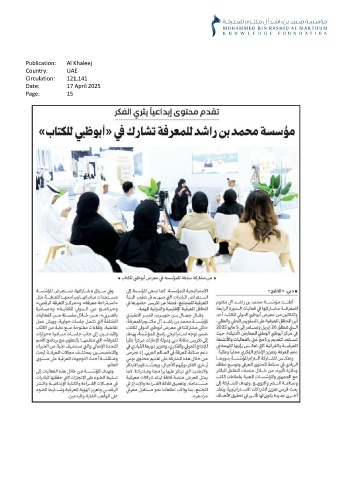 Publication: Al Khaleej Country: UAE Circulation: 121,141 Date: 17 April 2025 Page: 15