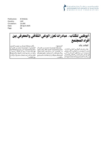 Publication: Al Wahda Country: UAE Circulation: 19,400 Date: 28 April 2025 Page: 06