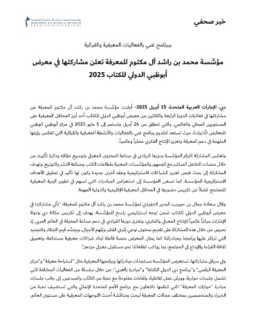 ﻦﻋ ﺔﻓﺮﻌﻤﻠﻟ مﻮﺘﻜﻣ لآ ﺪﺷار ﻦﺑ ﺪﻤﺤﻣ ﺔﺴﺳﺆﻣ ﺖﻨﻠﻋأ - 2025 ﻞﻳﺮﺑأ 15 ،ةﺪﺤﺘﻤﻟا ﺔﻴﺑﺮﻌﻟا تارﺎﻣﻹا ،ي ﺑد