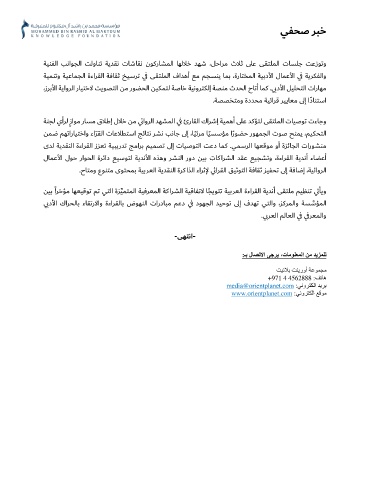 ﺔﻨﺠﻟ يأﺮﻟ زاﻮﻣ رﺎﺴﻣ قﻼﻃإ لﻼﺧ ﻦﻣ ي ﺋاوﺮﻟا ﺪﻬﺸﻤﻟا ي ﻓ ئرﺎﻘﻟا كاﺮﺷإ ﺔﻴﻤﻫأ ى�ﻋ ﺪﻛﺆﺘﻟ ﻰﻘﺘﻠﻤﻟا تﺎﻴﺻﻮﺗ تءﺎﺟو