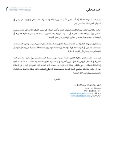 ﺔﻐﻠﻟا ماﺪﺨﺘﺳا ﺰﻳﺰﻌﺗ عﻮﺿﻮﻣ ى�ﻋ ءﻮﻀﻟا ﻂﻠﺴﺗ ﺔﻤﻬﻠﻣ ﺔﻳراﻮﺣ ﺔﺴﻠﺟ ي ﺑﺮﻌﻟﺎﺑ ةردﺎﺒﻣ مﺪﻘﺘﺳ ،ﻚﻟذ ﺐﻧﺎﺟ ىﻟإ