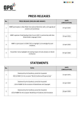 No. PRESS RELEASE (ENGLISH AND ARABIC) DATE