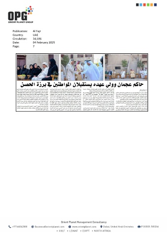 Publication: Al Fajr Country: UAE Circulation: 34,596 Date: 04 February 2025 Page: 7