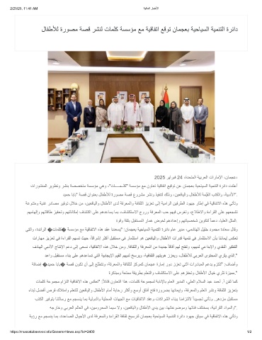 لﺎﻔطﻸﻟ ةروﺻﻣ ﺔﺻﻗ رﺷﻧﻟ تﺎﻣﻠﻛ ﺔﺳﺳؤﻣ ﻊﻣ ﺔﯾﻗﺎﻔﺗا ﻊﻗوﺗ نﺎﻣﺟﻌﺑ ﺔﯾﺣﺎﯾﺳﻟا ﺔﯾﻣﻧﺗﻟا ةرﺋاد