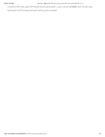 6/9/25, 9:50 AM "ﻲﺑظوﺑأ ﺔﺋﯾﺑ - 2025 مادﺗﺳﻣﻟا رﺛﻷا يّدﺣﺗ زﺋاوﺟ ﻊﯾزوﺗ لﻔﺣ لﻼﺧ ﺎًﻋورﺷﻣ نﯾرﺷﻋ لﺿﻓأ م ّ رﻛﯾ "ىرﺟﻣ