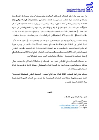"ةيعمتجملا ةيلوؤسملل ينطولا قودنصلا – ىرجم" مازتلا ىلع ةداهش 2025 مادتسملا رثلاا ي دحت دسجيو
