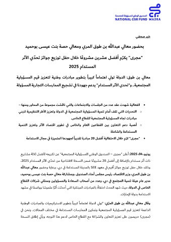 عيراشم ةثلاث لضف لأ هميركت نع "ةيعمتجملا ةيلوؤسملل ينطولا قودنصلا – ىرجم" نلعأ : 2025 ، 04 ، وينوي