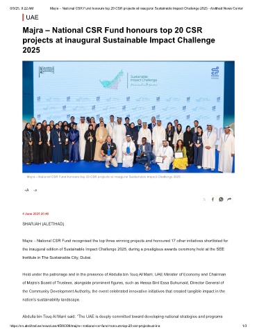 6/9/25, 9:22 AM Majra – National CSR Fund honours top 20 CSR projects at inaugural Sustainable Impact Challenge 2025 - Aletihad News Center