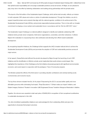 6/9/25, 9:22 AM Majra – National CSR Fund honours top 20 CSR projects at inaugural Sustainable Impact Challenge 2025 - Aletihad News Center