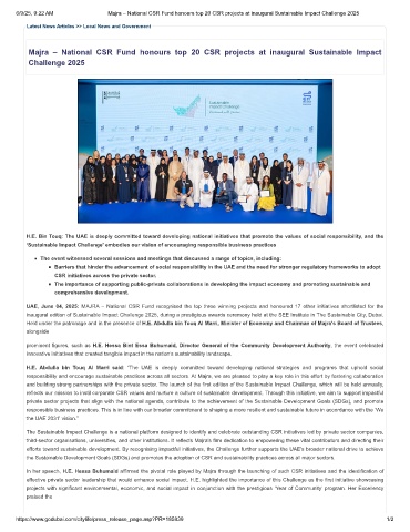 efforts toward sustainable development. By recognising impactful initiatives, the Challenge further supports the UAE's broader national drive to achieve